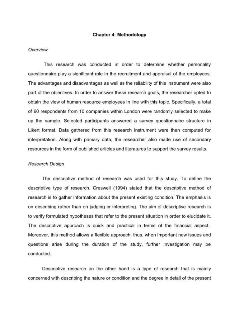 This example is taken from a study on how thermography can help in maximizing the energy used in a building with the least amount of waste. Methodology 3.1 introduction 3.2 research design 3.2.1 research purpose 3.2.2 research approach 3.2.3 research strategy 3.3 population and sampling design 3.3.1 population the population of a study basically refers to the total number of people in the form of a thorough headcount of all elements the findings of the. Population and sample •a population is a group of individuals that have the same characteristic(s). Personality type and likelihood to commit a crime) or to test a set of hypotheses. Methods are the specific tools and procedures you use to collect and analyze data (for example, experiments, surveys, and statistical tests). Key informant interviews (page 47) Methodology refers to the overarching strategy and rationale of your research project.it involves studying the methods used in your field and the theories or principles behind them, in order to develop an approach that matches your objectives. For example, if you have chosen to use research methods that are commonly chosen within your area of research or discipline, there is no need to give a great deal of justification or background information. Methodology examples methodology #1 ) thereis)a)wealth)of)information)for)this)review)sinceitisacurrenttopicofinterestin thecareerfieldfor)human)resource,corporatetraining,and)instructionaldesign professionals.theuniversityofnortherniowa rodlibrary,desmoinespubliclibrary ,) Laying out your methodology allows the reader to make their own decision about the validity of the data and understand how this may have produced the results it did. The purpose of methodology is to compose an underlying paradigm justifying the research methods undertaken (blaxter et al 2001). The chapter will discuss in detail the various stages of developing the methodology of the current study. Before beginning any research project, you must decide which methodology to use.